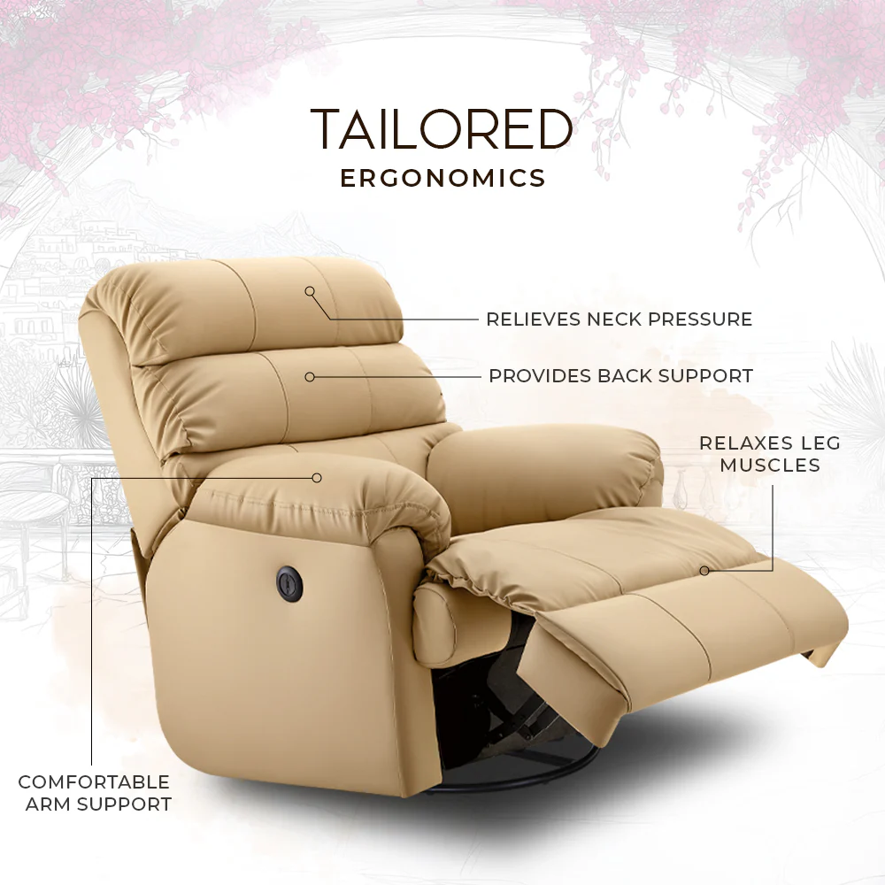 Avalon Posture Pro Rocking & Rotating Single Seater Premium Leatherette Recliner, Beige, Motorized